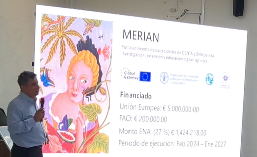 El proyecto MERIAN, financiado por la Unión Europea y ejecutado por FAO y UIT tiene como objetivo principal fortalecer las capacidades de investigación, extensión y educación digital agrícola en la Escuela Nacional de Agricultura, ENA y Centro Nacional de Tecnología Agropecuaria y Forestal, CENTA. Se desarrollará en un período de ejecución de febrero 2024 a enero 2027.